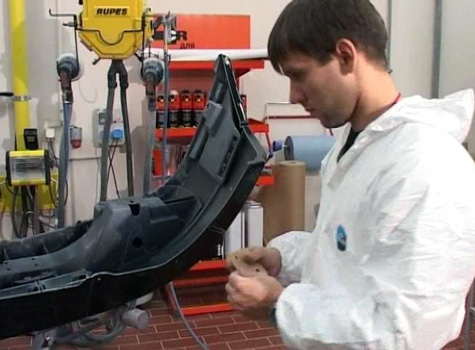 Удары, вмятины, царапины на бампере вовсе не означают, что его надо менять на новый. Многие повреждения можно устранить в ремонтной мастерской и даже самостоятельно. Технология ремонта бамперов, прежде всего, зависит от материала самого бампера. Формулу материала бампера можно узнать на изнаночной его стороне. Она обозначается латинскими символами: EPDM, РР и т.д. Бамперы можно сваривать, клеить, шить.