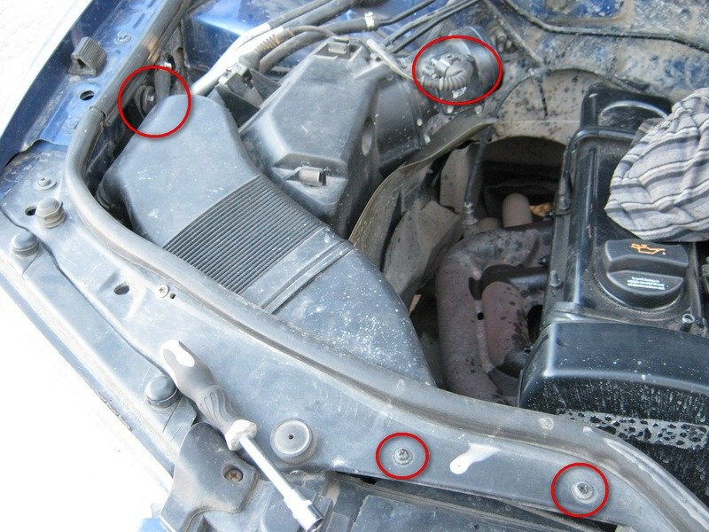 - Открутим три самореза крепления бачка ОЖ, отсоединим штекер и отведем бачок в сторону, зацепим и зафиксируем его там, чтобы он не мешался под руками.