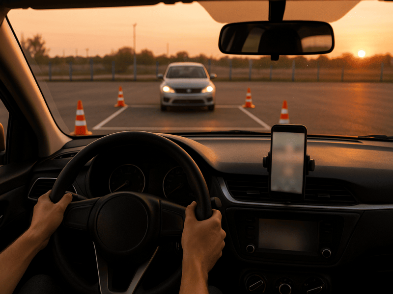 - Последовательности. Отрабатывайте короткие «сценки»: подъезд к месту — сигнал — снижение скорости — манёвр — остановка — нейтраль/паркинг — ручник — выезд с проверкой «плеча».